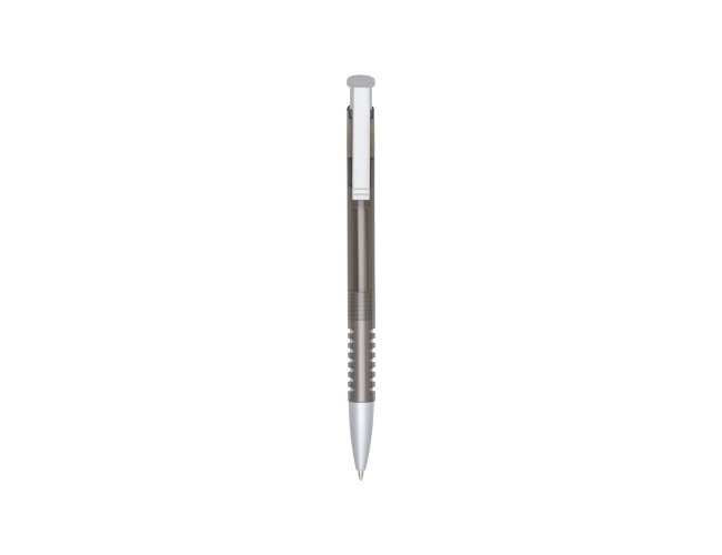 Caneta plástica com carga esferográfica azul 1.0 mm e acionamento por clique.