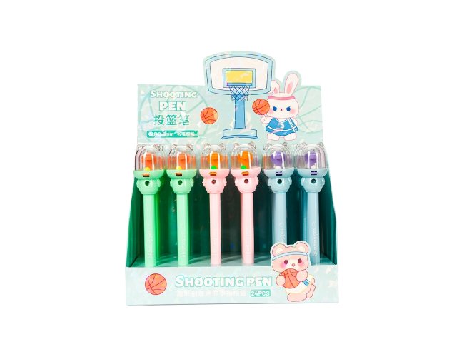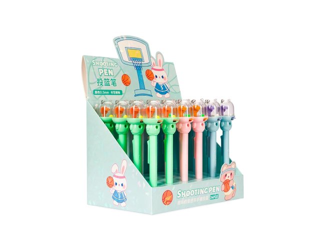 Caneta plástica mista com carga esferográfica preta de 0,5mm. Apresenta decoração no formato de basquete de dedo. Sua estrutura leve proporciona uma pegada suave para uma escrita precisa.