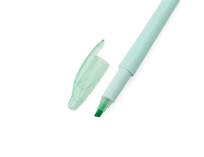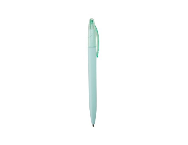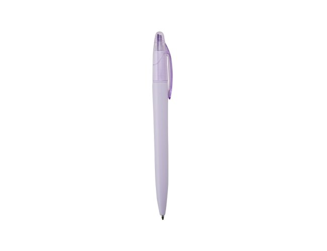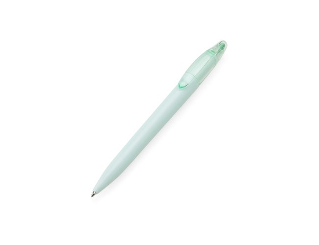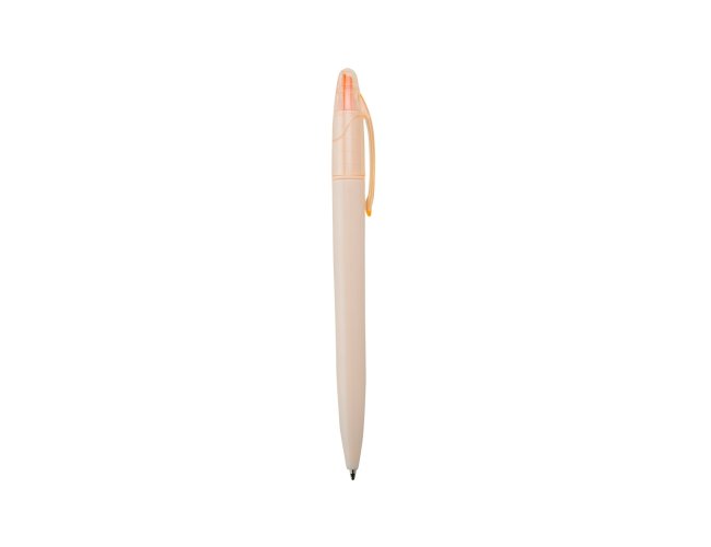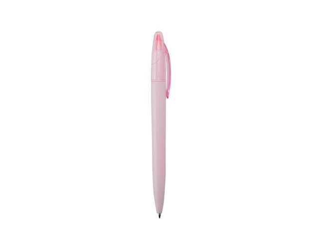 Caneta plástica com marca texto com tampa protetora para o marca texto, carga esferográfica azul 1.0mm e acionamento por rotação.