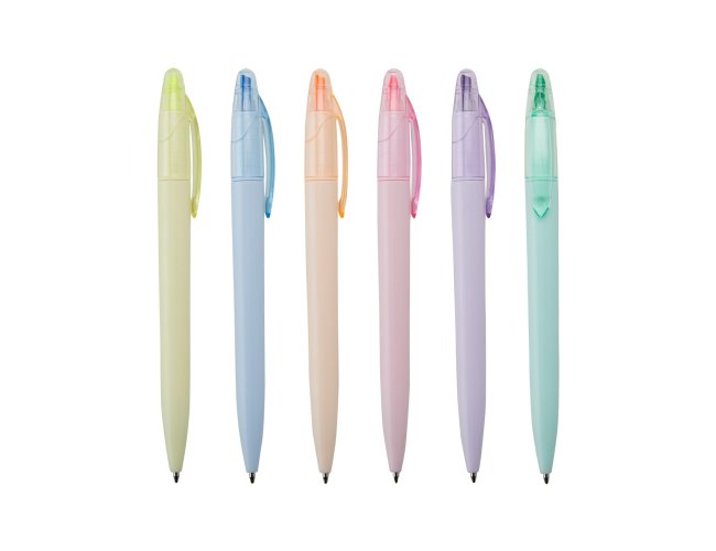 • Acionamento por Rotação • Caneta com Tampa • Carga Azul • Escrita 1.0mm • Marca-texto • Multifunções • Plásticas • Plásticas