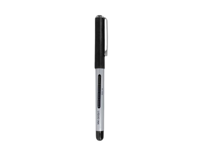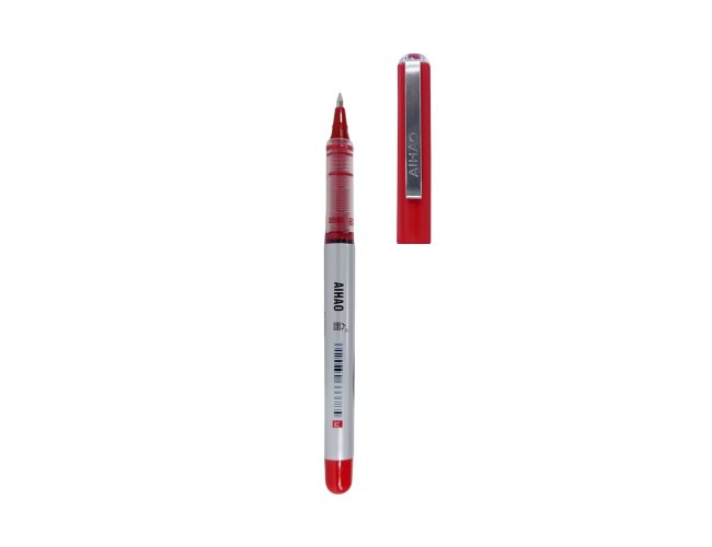 Caneta plástica com tampa, carga rollerball nas cores azul e vermelho 0.8 mm.