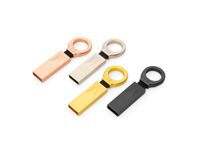 Carcaça de alumínio para montagem de pen drive, compatibilidade com memória COB. Possui argola para chaveiro e pintura fosca.