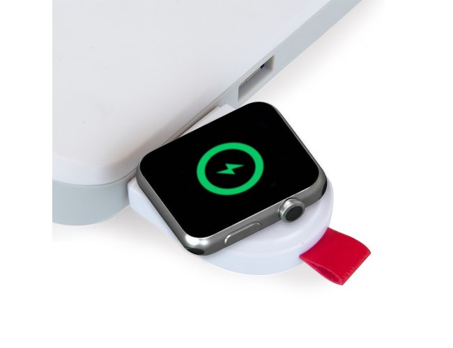 Carregador por Indução Iwatch. Produzido em ABS, o Iwatch é compatível apenas com os smartwatches da Apple, séries: 1, 2, 3 e 4. Possui entrada de 2W e alça de couro sintético (não removível).