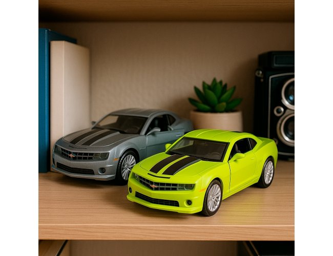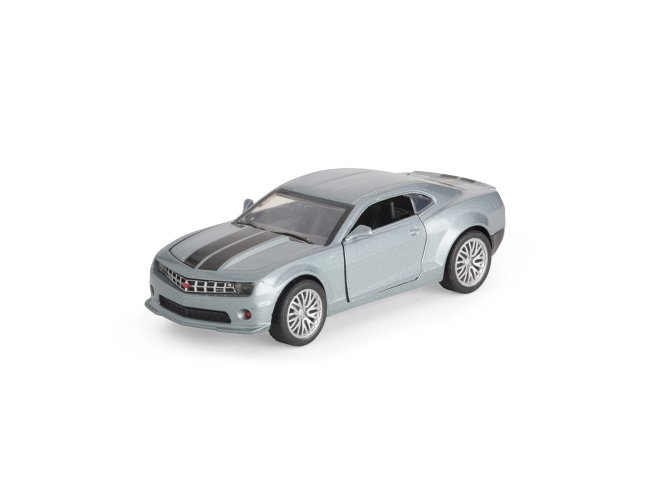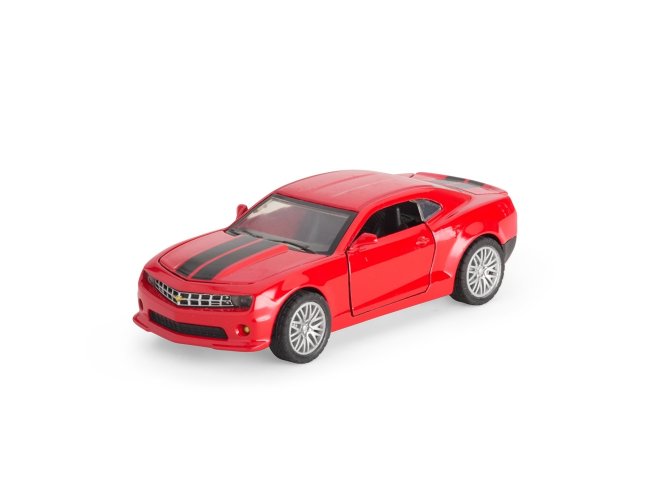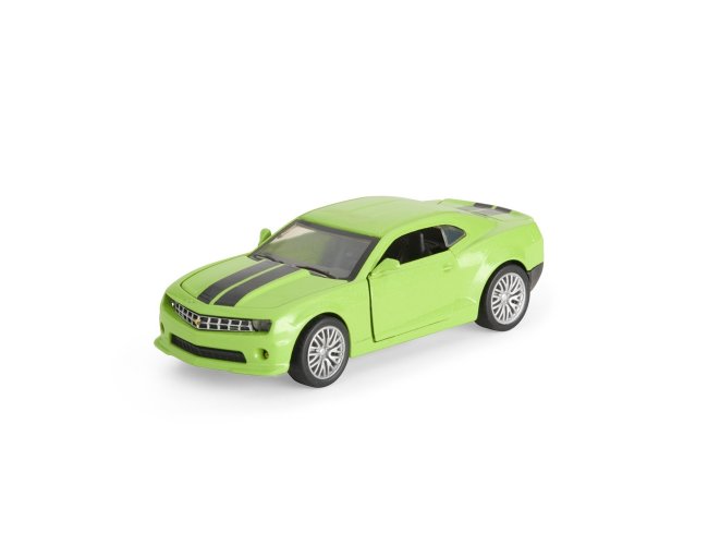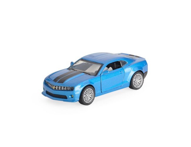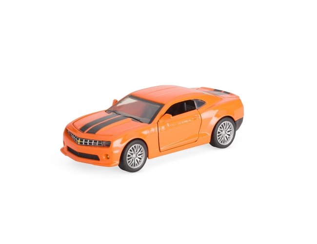 Carro estilo cupê em miniatura em metal e plástico, além de mecanismo de fricção e portas com abertura funcional.