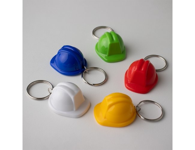 Um chaveiro em formato de capacete de segurança pensado para oferecer uma opção criativa e caprichada. Feito em plástico e com argola feita de metal, este chaveiro compacto e resistente também pode ser um item de decoração para zíperes de bolsas e mochilas sob medida para quem é da área de engenharia, segurança do trabalho entre outros ofícios relacionados.