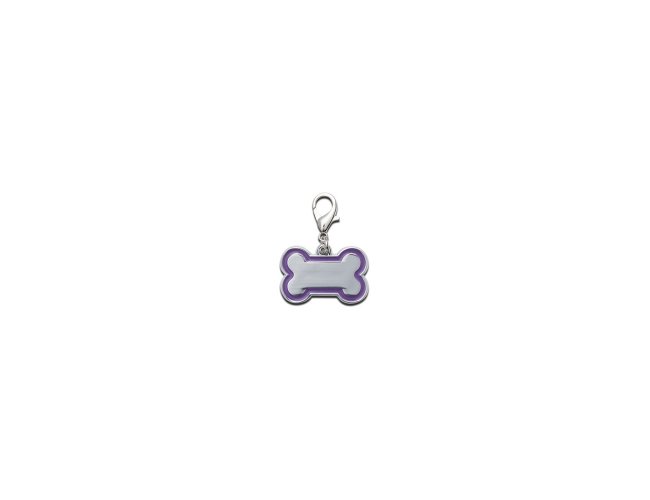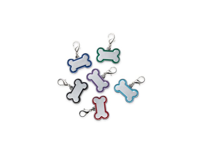 Chaveiro metálico de identificação para pets, dimensão 3,3 x 2,3 cm. Acompanha gancho.