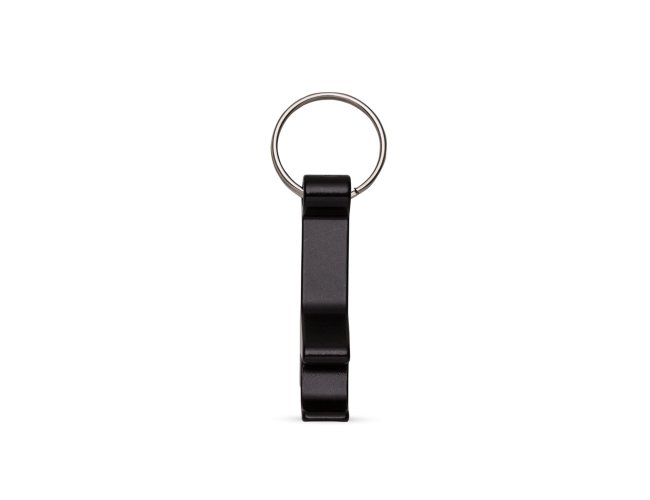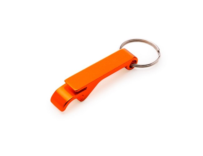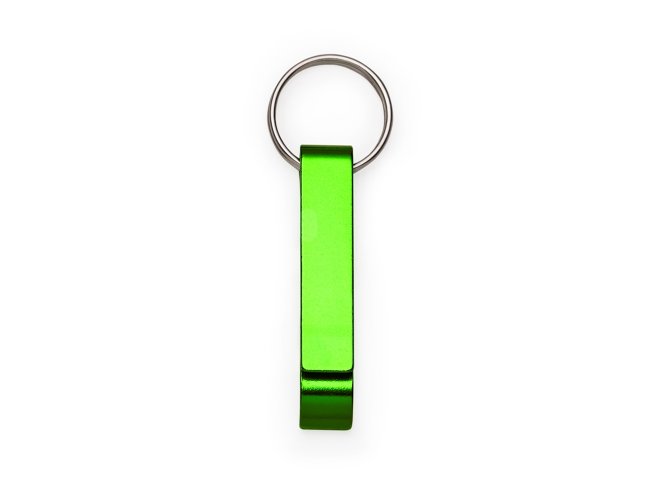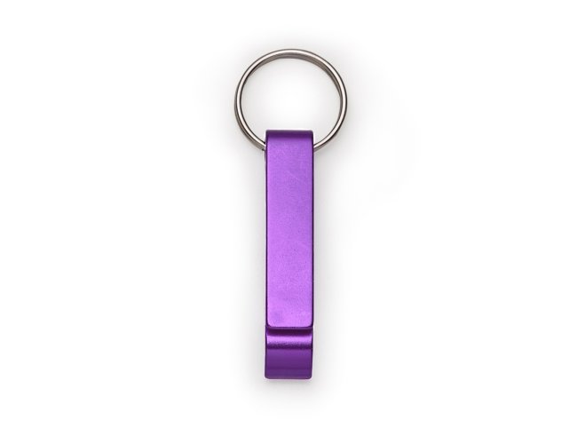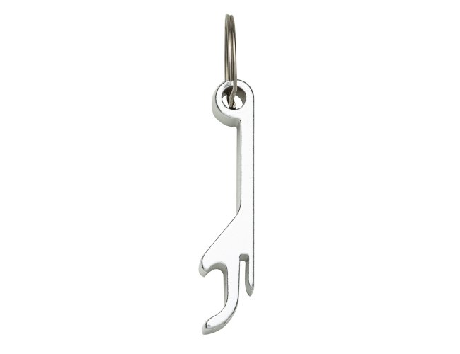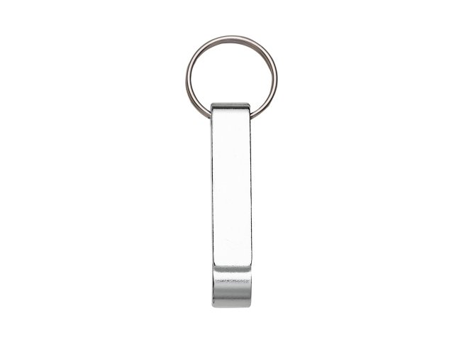 Chaveiro metálico com abridor de garrafas e argola de ferro niquelado.