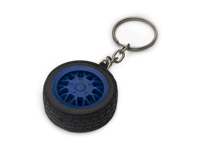 Chaveiro plástico formato pneu, aro detalhado plástico colorido de um lado e lado inverso liso(possível aplicar resina). Pneu emborrachado.