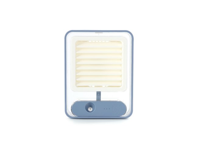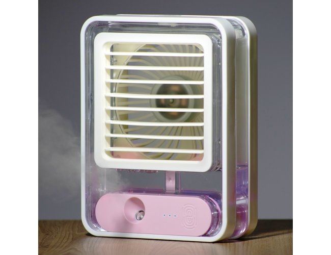 Climatizador portátil recarregável com 3 intensidades de ventilações e luzes led multicoloridas. Feito em plástico polipropileno, o climatizador pode ser utilizado exclusivamente como umidificador, ventilador ou ambas funções. Cabo tipo-C incluso.