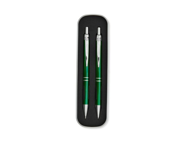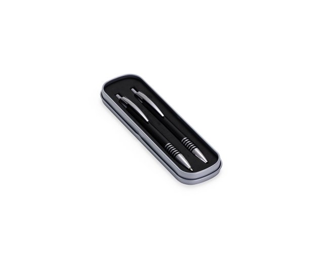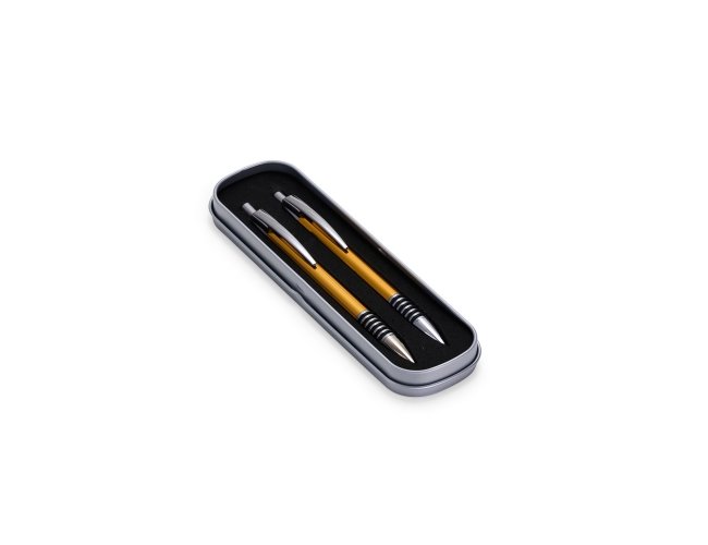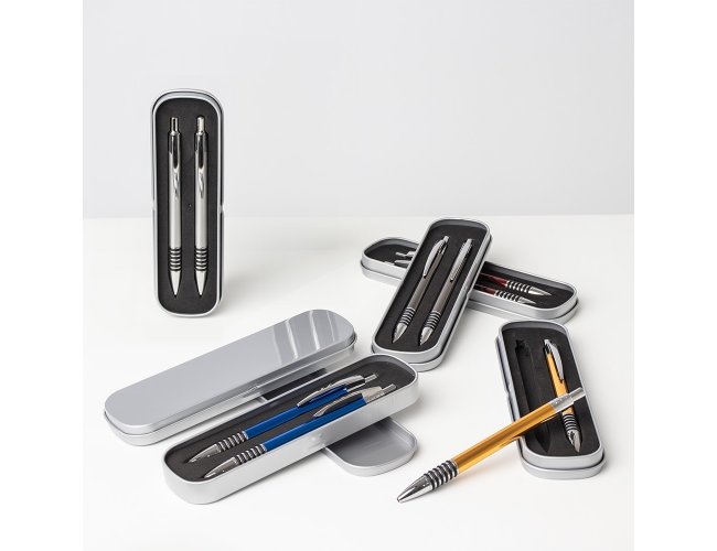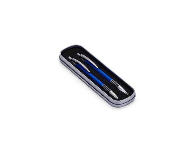 Com este conjunto de caneta e lapiseira metálicas, escrever será uma experiência ainda mais sofisticada e elegante. O estojo em metal que as acomoda, possui revestimento em espuma para evitar riscos. A caneta possui carga esferográfica azul de 1.0mm, com acionamento por clique, já a lapiseira possui grafite 0.7mm.