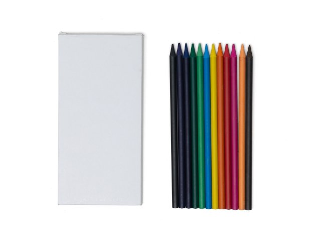 Conjunto lápis de cor com 12 unidades, acompanha case/embalagem de papelão. Lápis de grafite colorido e corpo produzido em material mina de pigmentação colorida(sem grafite no corpo).
