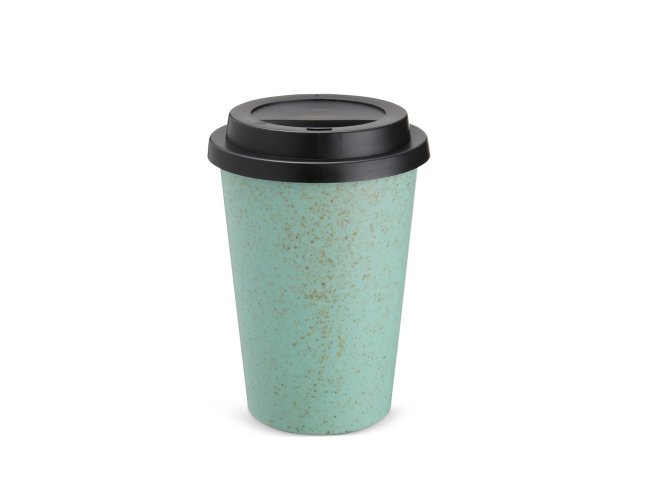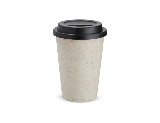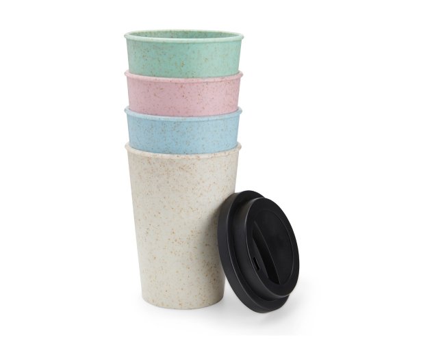 Copo fibra de arroz e polipropileno com capacidade de 450ml livre de BPA, possui tampa com bocal.