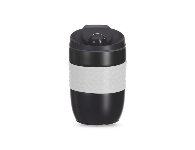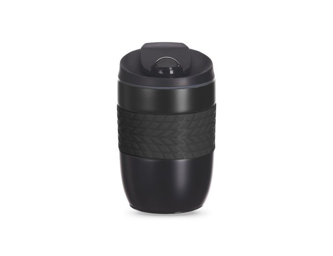 Copo antiqueda 250ml produzido em inox com parede dupla e luva de silicone, possui tampa plástica rosqueável com proteção para o bocal e parte inferior com ventosa para fixação. Obs.: Conserva temperatura.