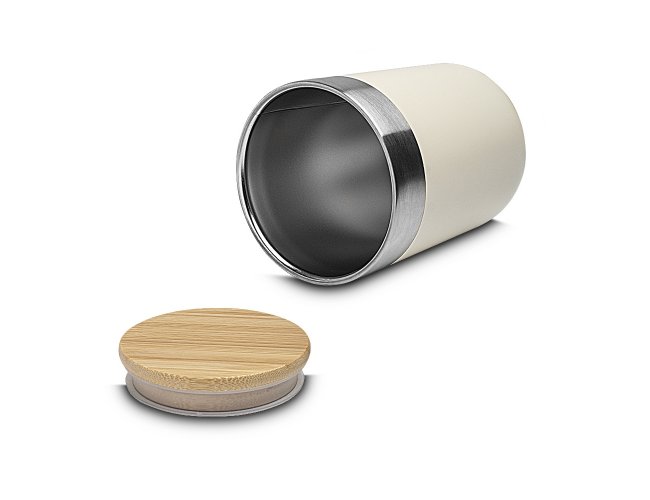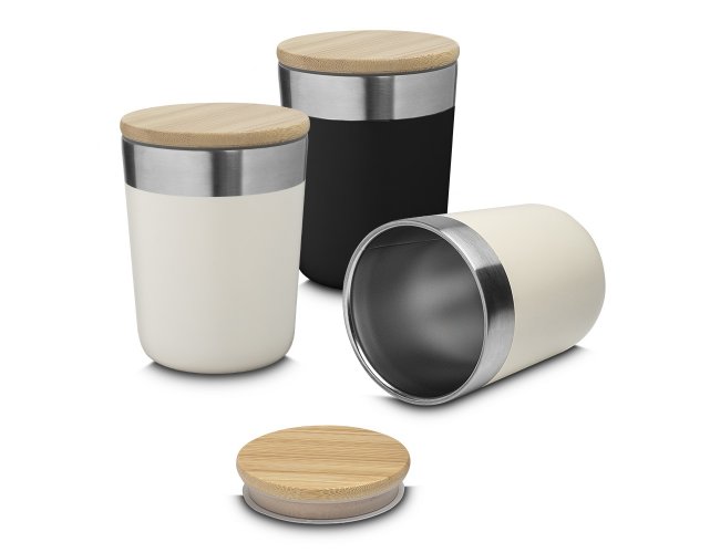 Bebidas geladas por mais tempo neste copo térmico, com capacidade de 300ml, feito em inox, com parede dupla e tampa de bambu que possui um anel de silicone para vedação. Seu design e pintura fosca são o toque de modernidade que você procura.