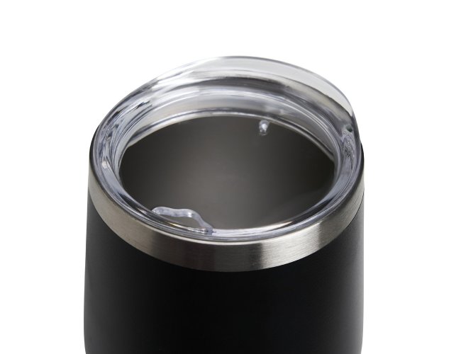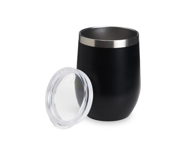 Copo térmico de capacidade de 320ml, feito em inox, com parede dupla e tampa plástica (livre de BPA) com bocal para um consumo mais rápido e prático.