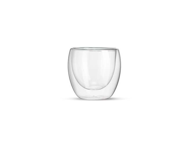 Copo de vidro borossilicato parede dupla com capacidade para 160ml.