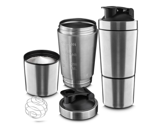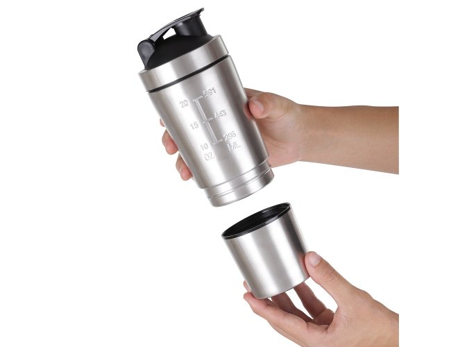 Preparar suplementos e shakes para os treinos nunca foi tão fácil e prático. Nossa Coqueteleira vem com dois compartimentos separados: um de 750ml para o líquido principal e outro de 150ml para suplementos ou ingredientes extras. Feita em aço inox, ela conta com um misturador de mola para garantir bebidas perfeitamente homogêneas. Além disso, a coqueteleira possui tampa rosqueável com fechamento de trava para maior segurança, tem um medidor gravado, facilitando o preparo das suas receitas com a dose exata e uma base antiderrapante que oferece mais segurança. Ideal para quem busca praticidade no preparo para o treino, além de drinks sofisticados para aproveitar sozinho ou com os amigos.