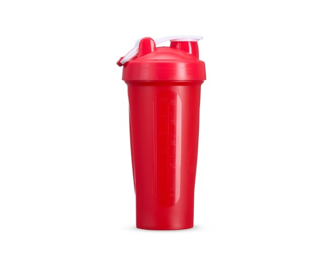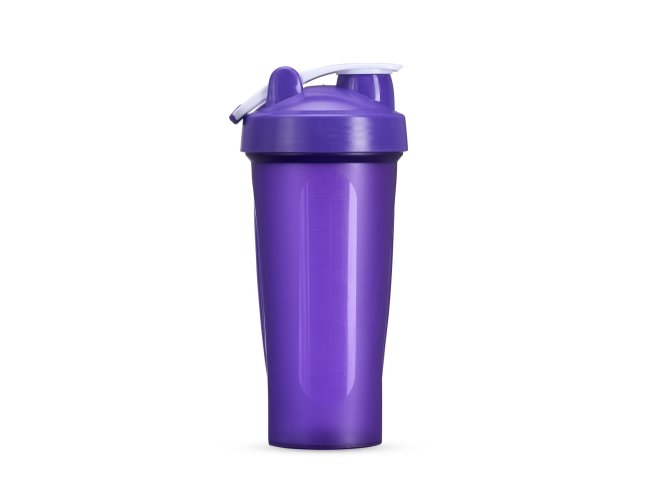 Coqueteleira em polipropileno com capacidade de 700ml, livre de BPA, copo contendo detalhes laterais em relevo e escala de medições em ml e oz. Tampa rosqueável com bocal, trava de segurança e alça para transporte. Acompanha misturador de mola.