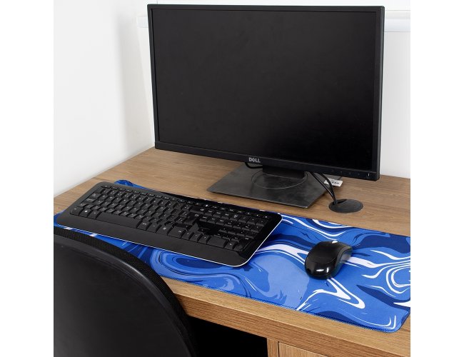 Desk pad flexível em poliéster com base em EVA antiderrapante, uma combinação que proporciona mais conforto durante o uso, além da proteção de superfícies planas.