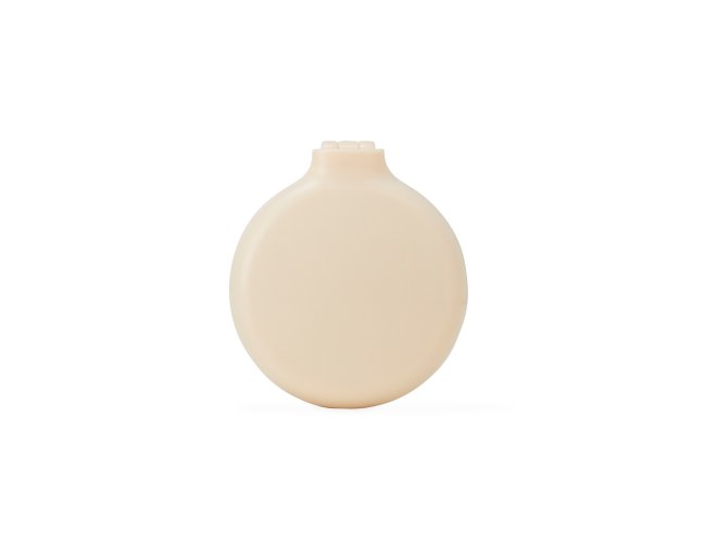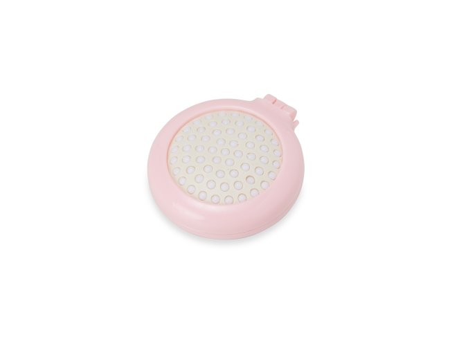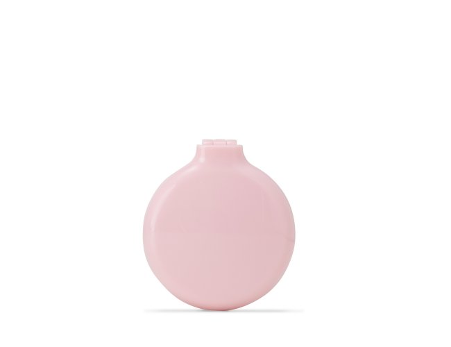 Escova plástica com acabamento leitoso e espelho interno de vidro sem aumento. Possui cerdas retráteis macias que massageiam o couro cabeludo enquanto penteiam os fios de cabelos.