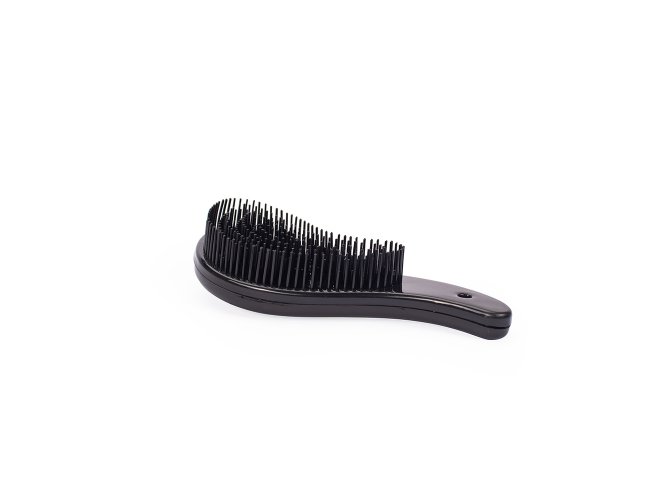 Uma escova com design compacto e ergonômico que deixa os fios desembaraçados sem dificuldades ou causar danos. Feita inteiramente em plástico, conta com cerdas flexíveis são posicionadas em dois níveis diferentes. Proporciona um pentear mais suave e desembaraçante sem repuxar os fios e nem provocar quedas. Além disso, a escova mágica também é versátil e pode ser utilizada em cabelos de todos os comprimentos e curvaturas.