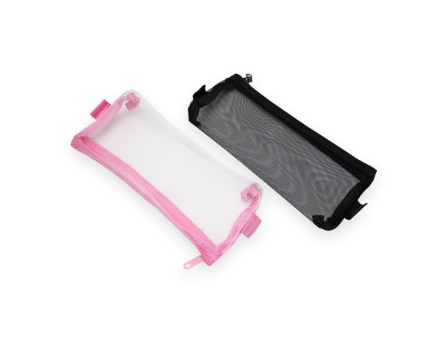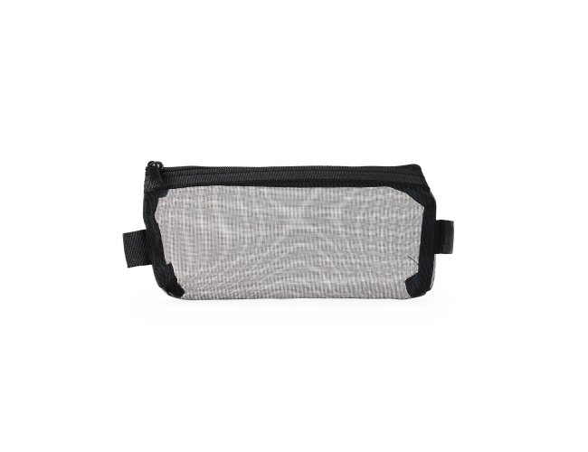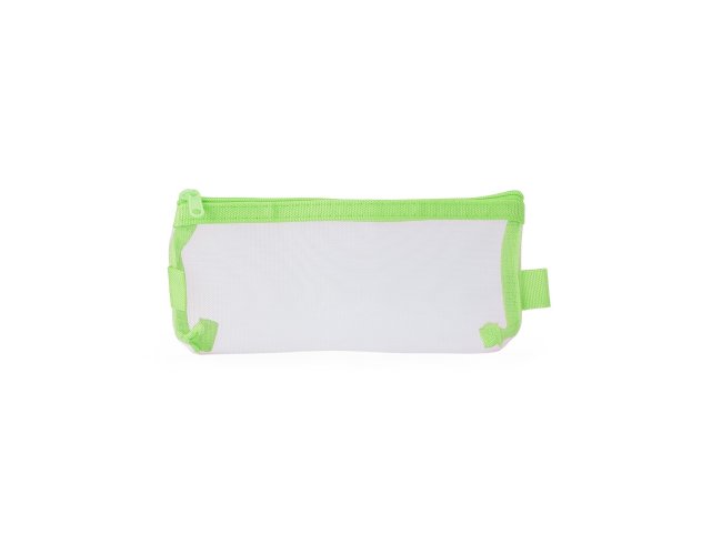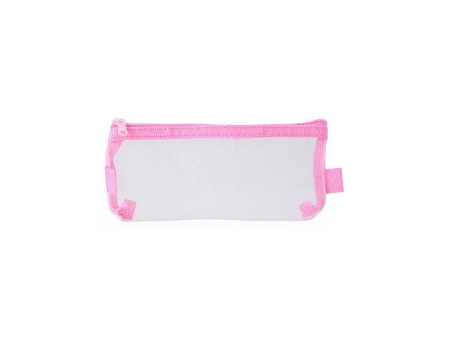 Estojo de nylon com zíper equipado com duas alças personalizáveis.