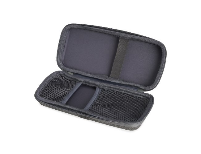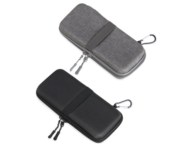 Estojo de proteção para eletrônicos, feito em nylon resistente à água. Contém bolsos de malha internamente e elásticos para fixação na área interna e externa. Acompanha mosquetão.