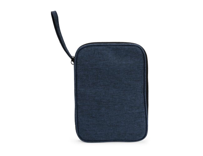 Estojo confeccionado em poliéster resistente à água. Conta com bolso interno em tela de nylon e fechamento em zíper e divisórias em diferentes tamanhos em elástico. Possui alça de mão para transporte.