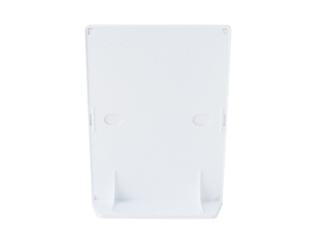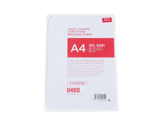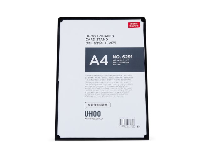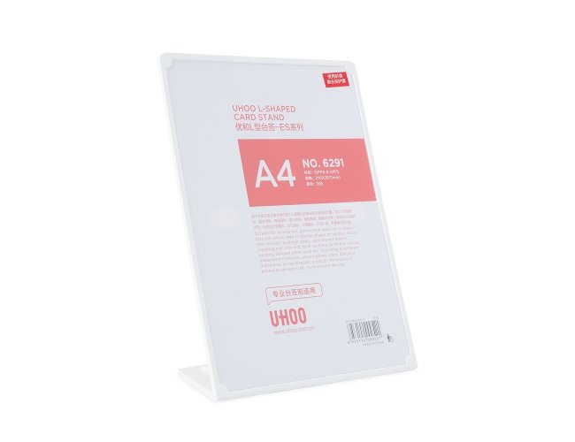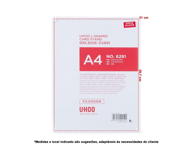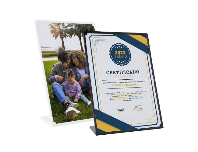 Expositor porta retrato A4 feito em poliestireno com placa acrílica.
