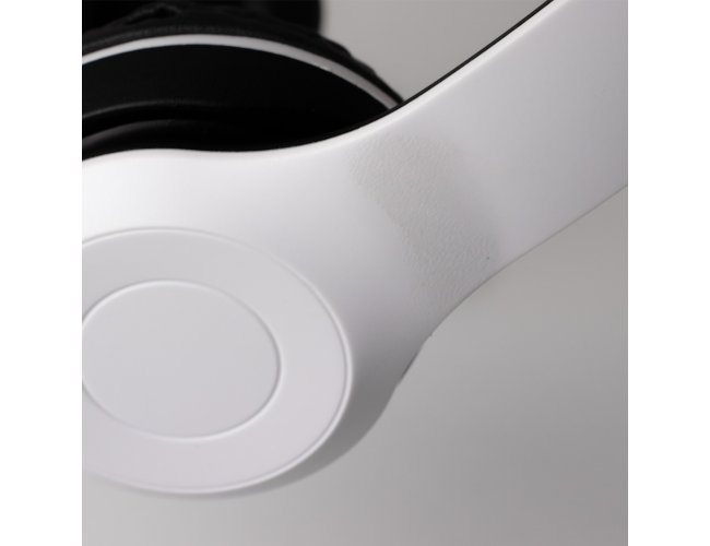 one de ouvido bluetooth com pintura fosca e rádio FM. Material articulável plástico com hastes de altura regulável e protetor de couro sintético com espuma interna. Botão superior Liga/Desliga: basta segurá-lo para ligar ou desligar; Botão esquerdo > + : ao pressioná-lo irá avançar a faixa ou estação, ao segurar irá aumentar o volume; Botão inferior Modo: ao pressioná-lo alterna entre os modos bluetooth e rádio; Botão central >