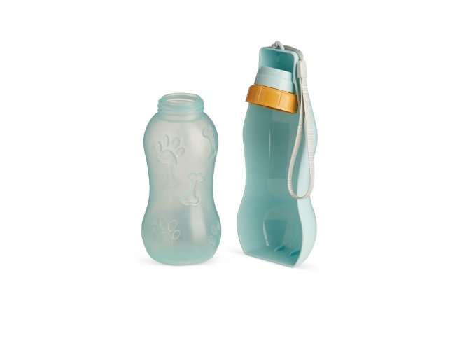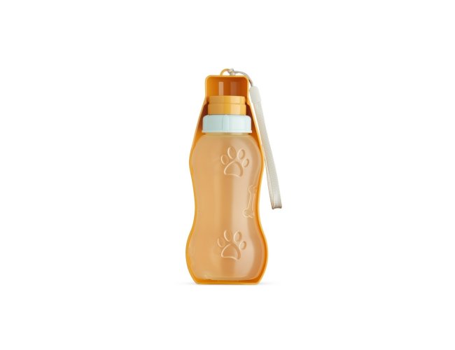 Garrafa bebedouro para pet feita em plástico com capacidade de 400ml. Tampa rosqueável antivazamento com sistema retrátil, basta puxar a garrafa para a vazão da água através da tigela. Acompanha cordão de nylon.