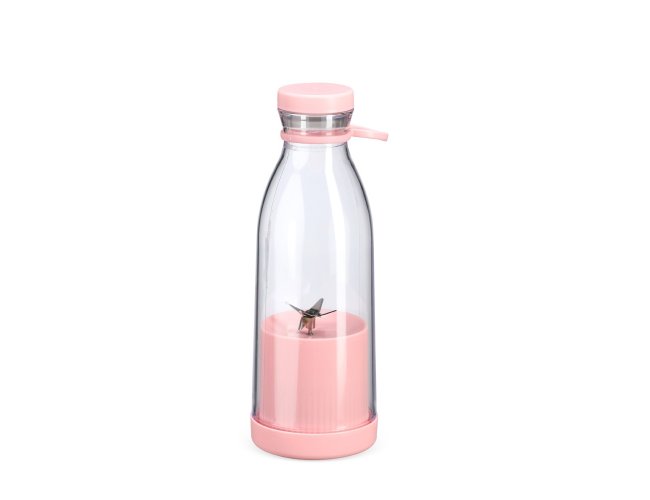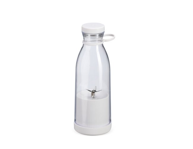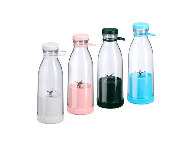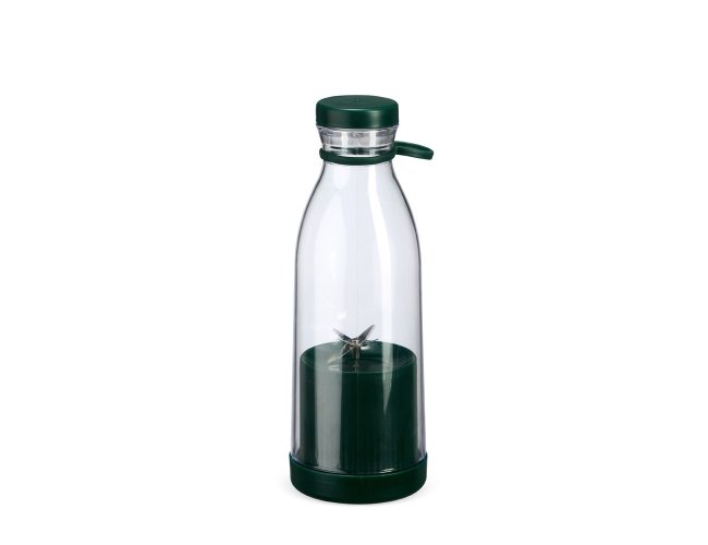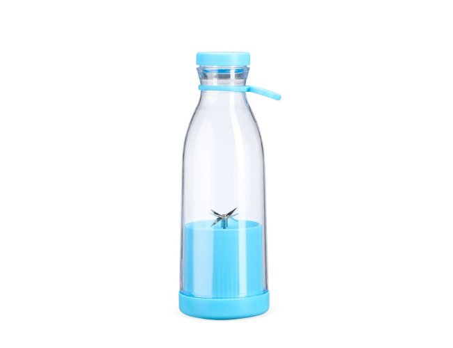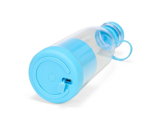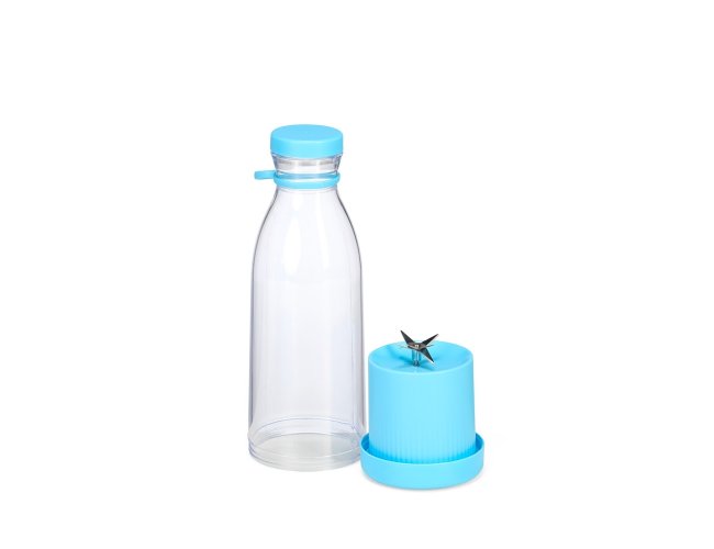 Garrafa plástica com base misturadora para frutas com capacidade máxima de 380ml. Possui base rosqueável com lâminas em inox acionadas por botão, permitindo a mistura de frutas com líquidos, além de tampa rosqueável e alça removível em silicone para transporte. Observação: Para que o triturador funcione corretamente, o volume de frutas e líquidos não deve ultrapassar 300ml.