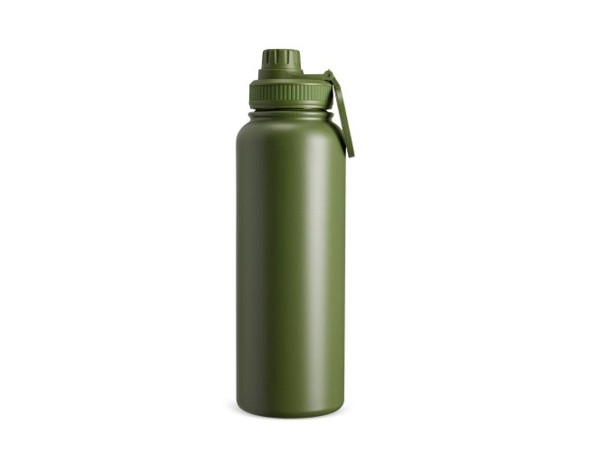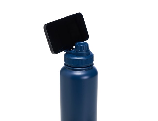 Garrafa térmica em inox com pintura eletrostática e capacidade máxima de 1,2 litro. Possui estrutura de parede dupla e isolamento a vácuo que permite a conservação da temperatura de líquidos por mais tempo. Dispõe ainda de tampa rosqueável em plástico com alça circular magnética compatível com smartphones da linha iPhone da Apple.