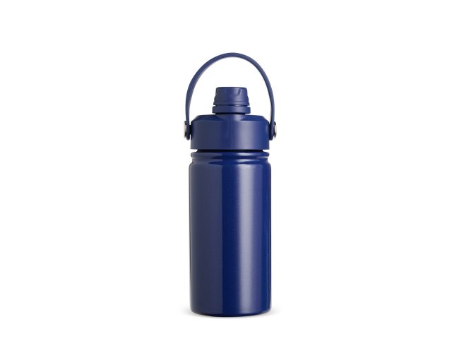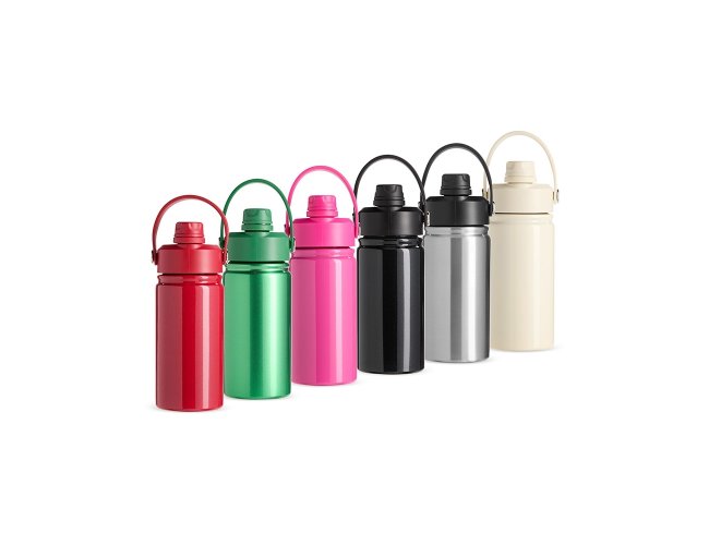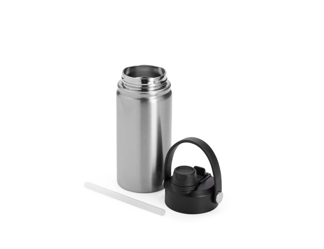 Garrafa térmica em inox com capacidade máxima para 400ml. Apresenta estrutura de parede dupla com vedação a vácuo, garantindo a conservação da temperatura de líquidos por mais tempo. Possui tampa plástica rosqueável com protetor para o bocal, bico flip, canudo interno removível e alça fixa para transporte.