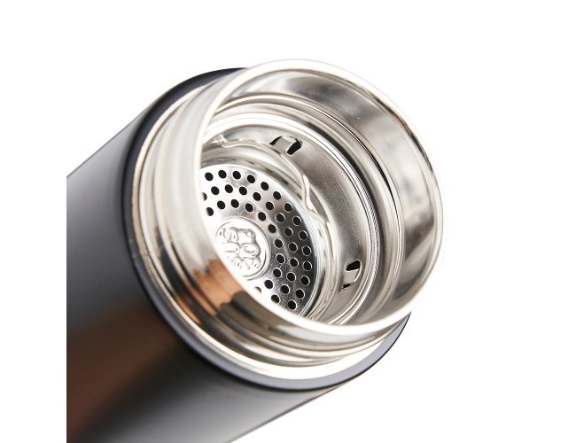 Garrafa térmica 500ml feita em aço inoxidável 304, acompanha infusor de bebidas.