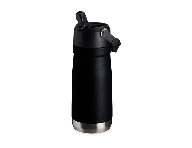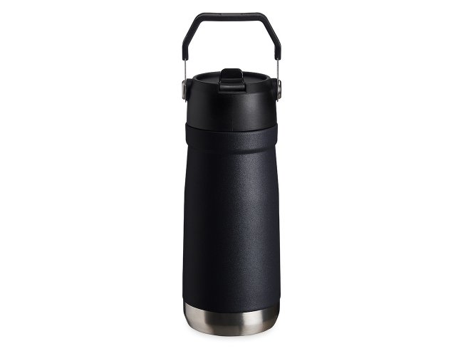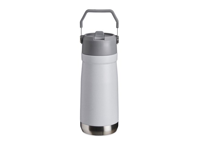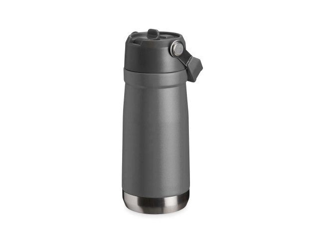 Garrafa térmica de parede dupla em inox, capacidade de 550ml. Tampa com alça de transporte, bico flip e canudo interno.