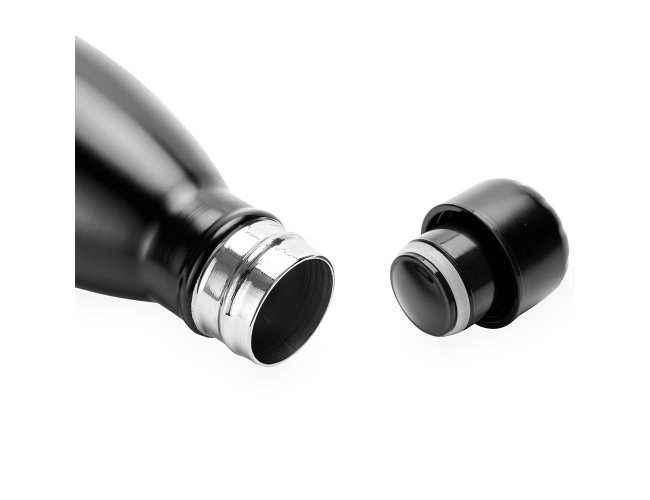 Garrafa térmica em inox 304 com tampa rosqueável e capacidade máxima de 780ml. Possui estrutura de parede dupla e vedação a vácuo, garantindo a temperatura de líquidos conservada por mais tempo.