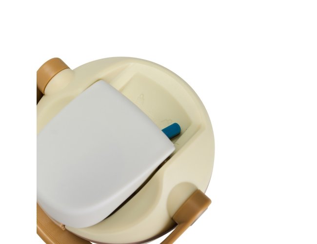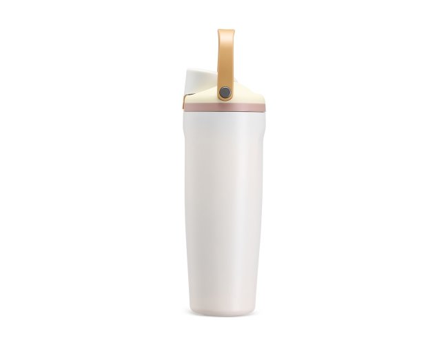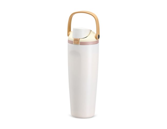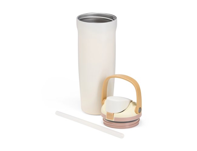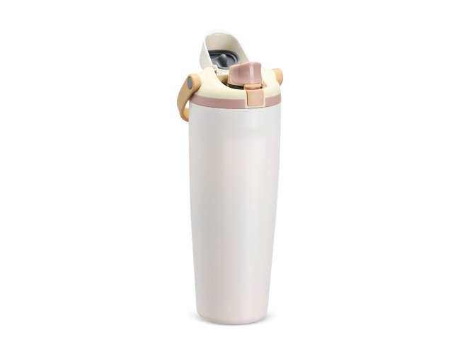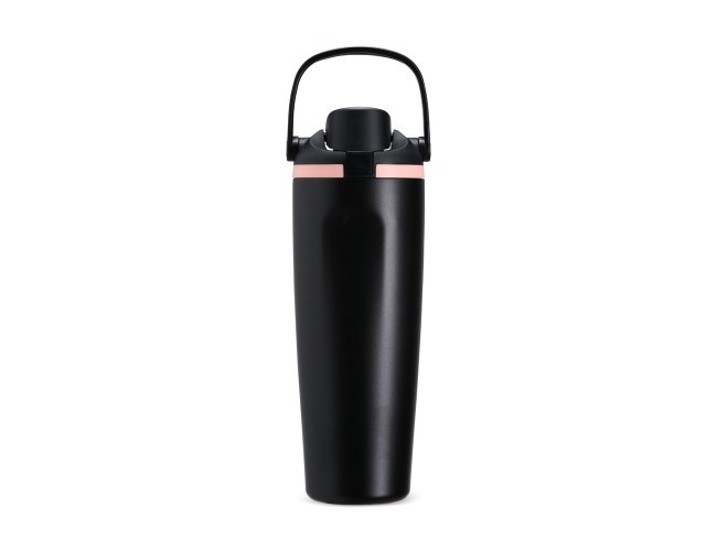 Garrafa térmica em inox com capacidade para até 850ml. Conta com estrutura de parede dupla e vedação a vácuo, ajudando a conservar a temperatura dos líquidos por mais tempo. Possui tampa rosqueável em plástico com protetor para o bocal, botão de acionamento, trava de segurança e alça de mão para transporte. Acompanha canudo para encaixe interno na tampa.