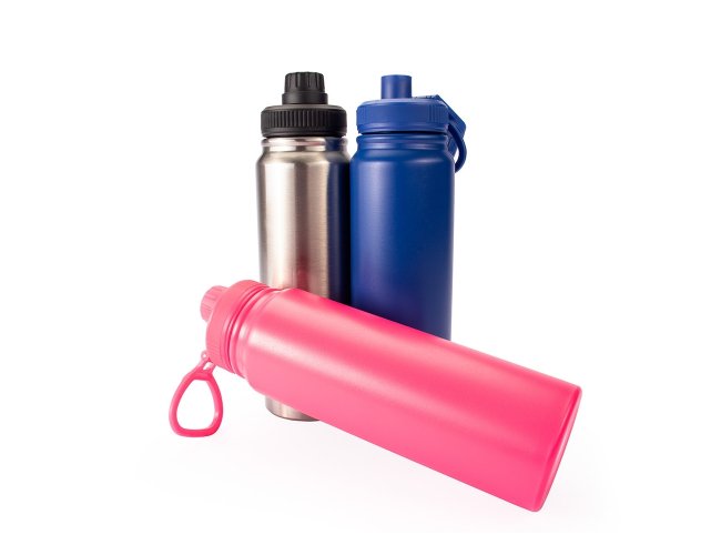 Garrafa térmica em inox com capacidade máxima de 750ml e infusor interno do mesmo material. Conta com estrutura de parede dupla e vedação a vácuo, que ajuda a conservar a temperatura de líquidos por mais tempo. Contém tampa plástica rosqueável com proteção para o bocal e alça superior para transporte.