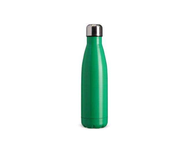 Garrafa térmica em inox com capacidade de até 500ml. Conta com tampa rosqueável e estrutura em parede dupla e isolamento a vácuo, que permite conservar a temperatura de líquidos por mais tempo.