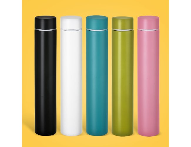 Garrafa térmica 275ml em inox com tampa rosqueável.