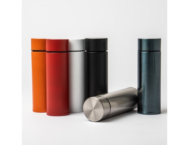 Garrafa térmica 320ml feita em aço inoxidável 304 com tampa rosqueável.
