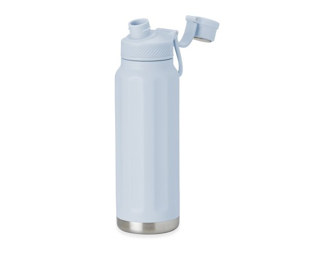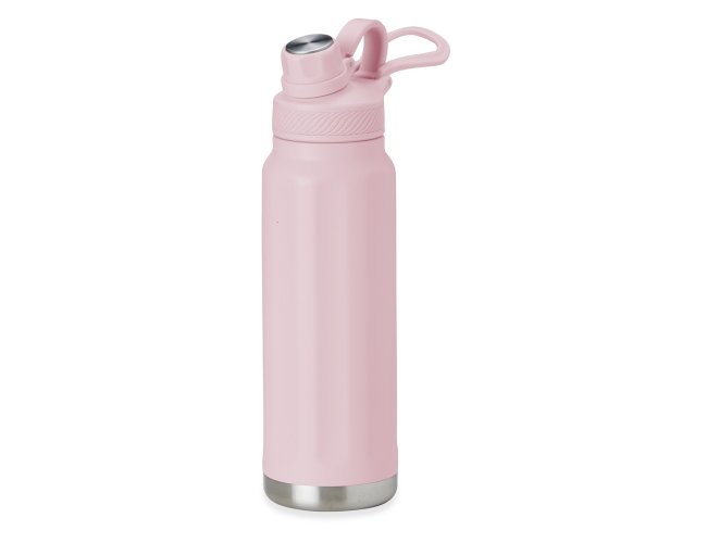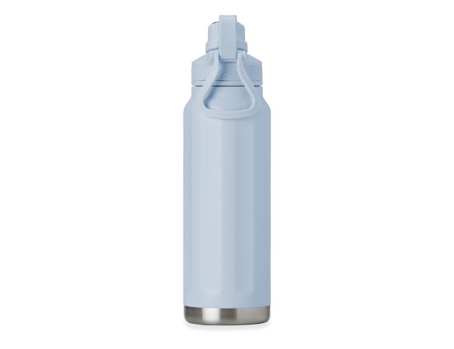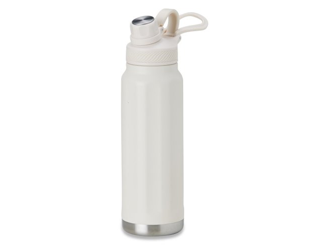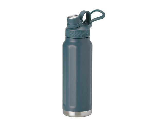 Garrafa térmica feita em inox 304 de parede dupla com capacidade de 950ml. Com design de faixas em relevo, a garrafa possui tampa com alça para transporte e tampa de proteção para o bocal.