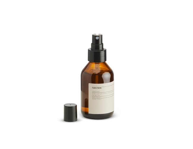 Home Spray em frasco de vidro 100ml, com essência de cedro verde.