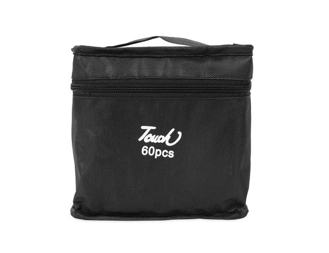 Um kit com 60 canetas marcadoras com pontas duplas: uma fina e outra chanfrada grossa. Cada uma das canetas possui corpo leve em plástico, projetado com foco na ergonomia, o que torna seu manuseio simples e agradável até mesmo em períodos prolongados. Este é um conjunto que, através de toda a sua versatilidade com as pontas e a variedade de cores, traz todas as possibilidades criativas para pintar, desenhar, escrever ou marcar textos. Acompanham bolsa para facilitar o transporte do kit.