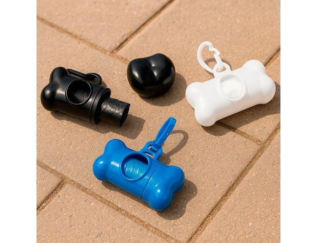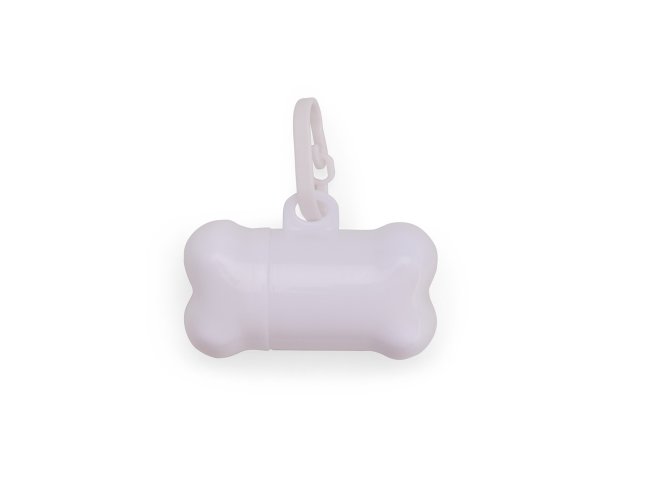 Kit de saquinhos coletores em formato de osso. Feito em plástico, possui abertura rosqueável que permite encaixar o refil, além de espaço para a retirada dos saquinhos. Acompanha mosquetão de plástico e refil de saquinhos.