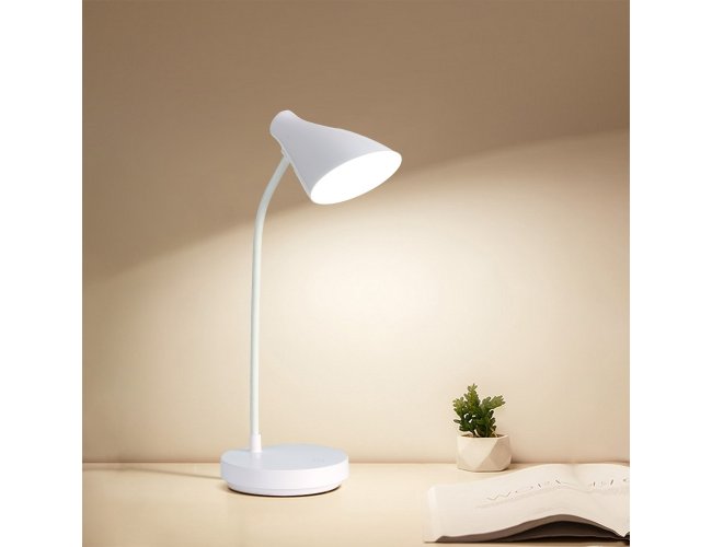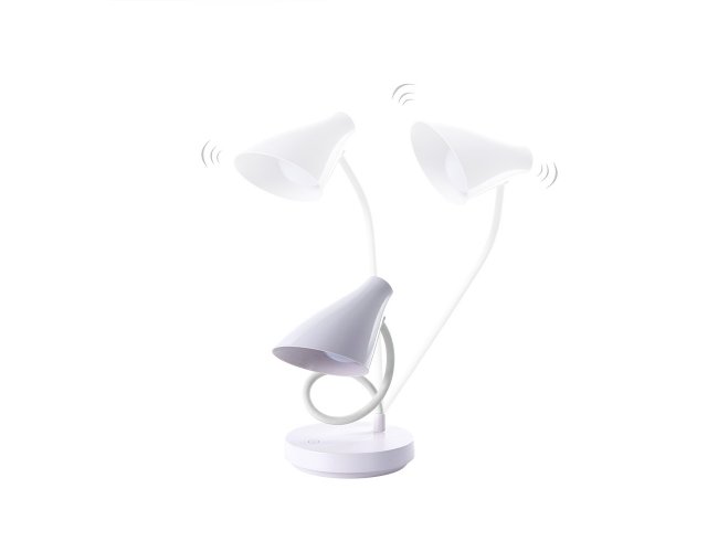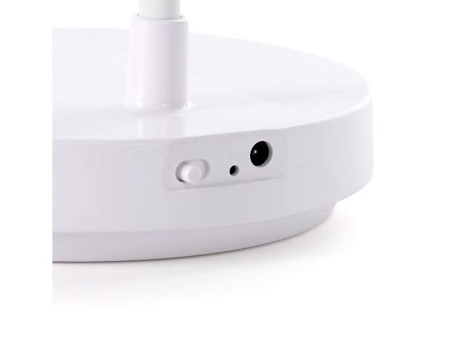 Luminária articulável em led recarregável e funcionamento touch, material plástico. Contém três estágios de iluminação com regulagem de intensidade touch: luz fria (branca), luz quente (amarela) e luz mista (branca e amarela). Base com botão para ligar e desligar. Acompanha uma bateria de lítio e cabo USB para carregamento.