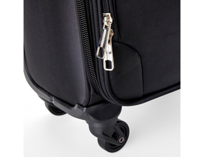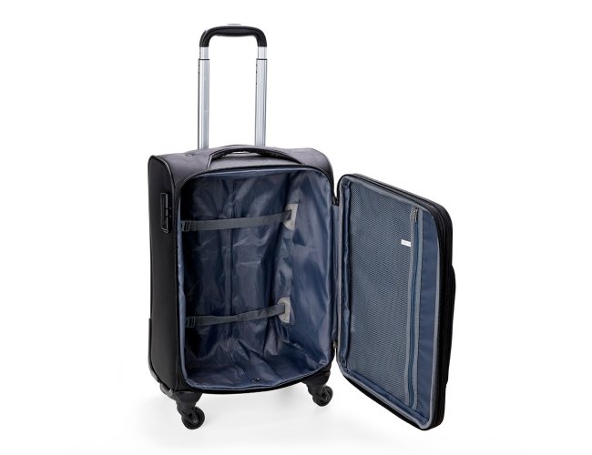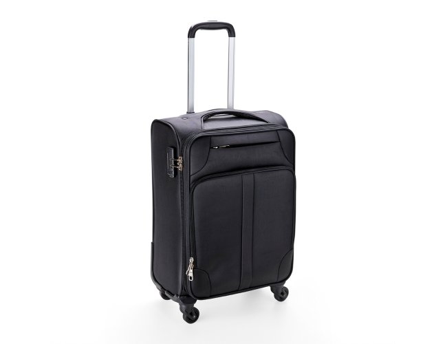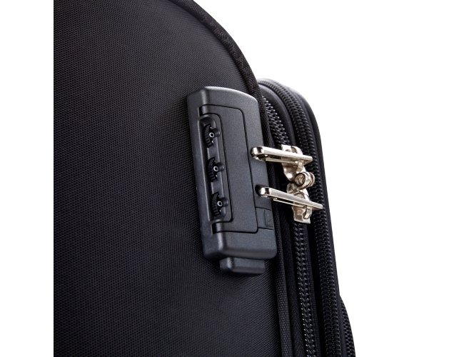 Mala de bordo 47 Litros com padrão ANAC (Agência Nacional de Aviação Civil), confeccionada em poliéster de alta qualidade, com cadeado numérico TSA. Possui etiquetas de identificação embutidas na mala, sendo uma integrada ao cadeado e outra na parte de trás da mala, acoplada por estojo em couro sintético. Três compartimentos, bolso telado, cinta compressora para roupas, alça de mão em poliéster, puxador retrátil com regulagem de tamanho e quatro rodinhas 360º.