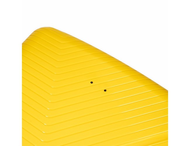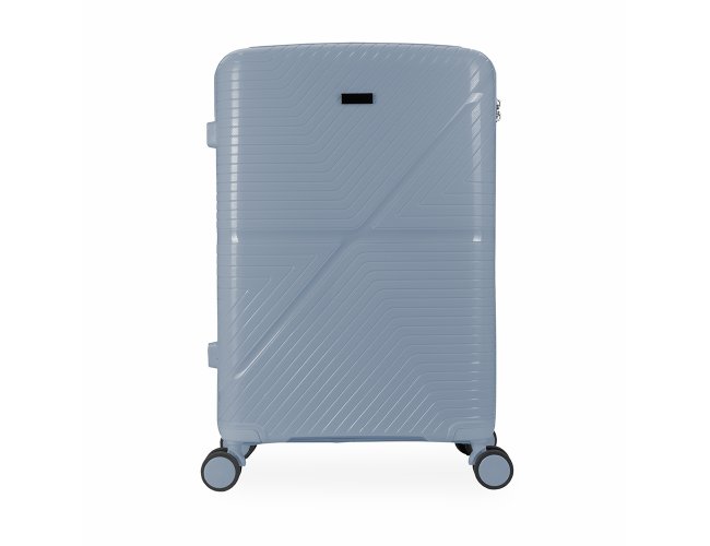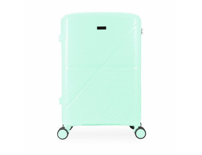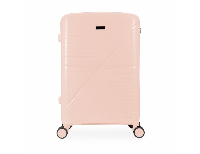 Mala de viagem em plástico resistente com capacidade de até 67 litros. Possui espaço interno com divisória, que contém bolso em tela e outro espaço com cinta compressora para organização de objetos. Conta com duas alças de mãos, uma superior e outra lateral, quatro apoios laterais, quatro rodinhas com giro em 360º, puxador com ajuste de nível e cadeado numérico TSA. Acompanha placa em metal para personalização.