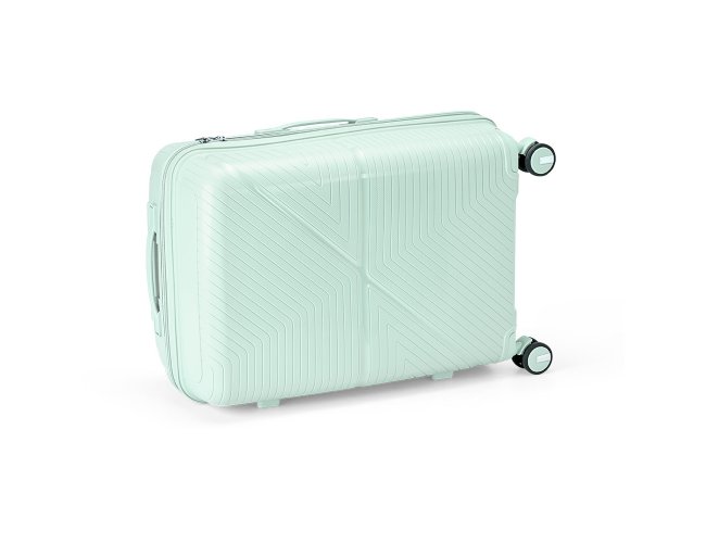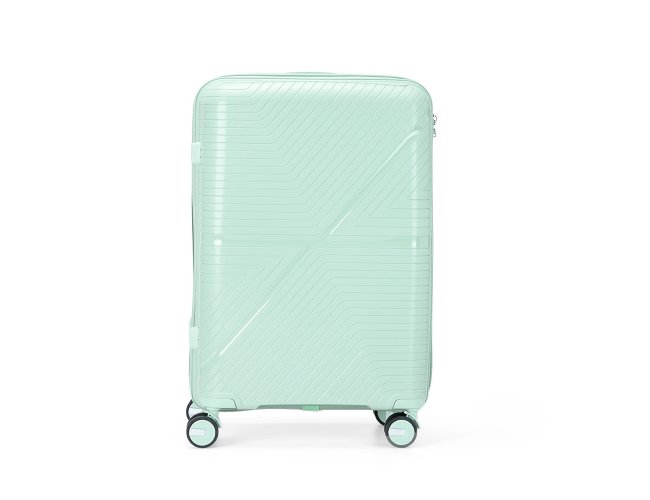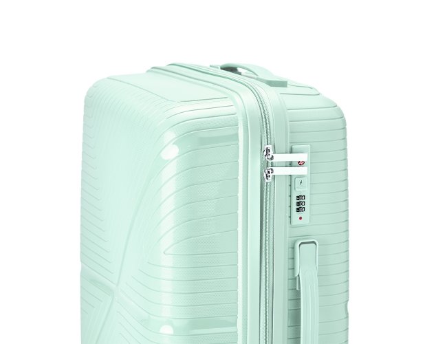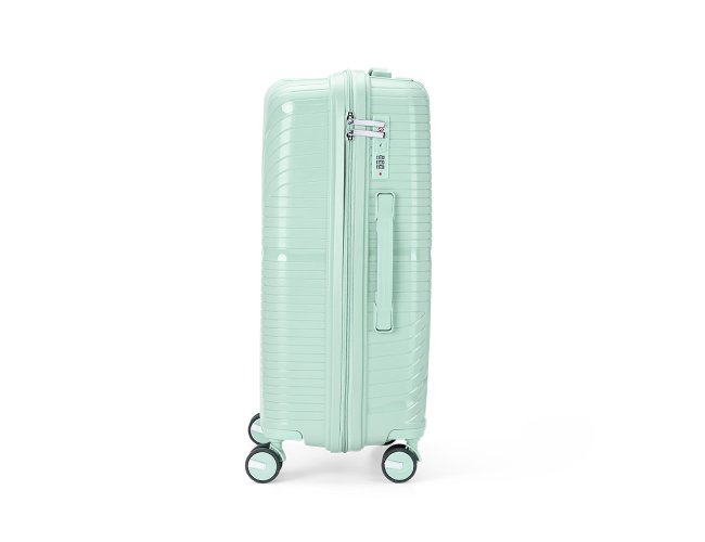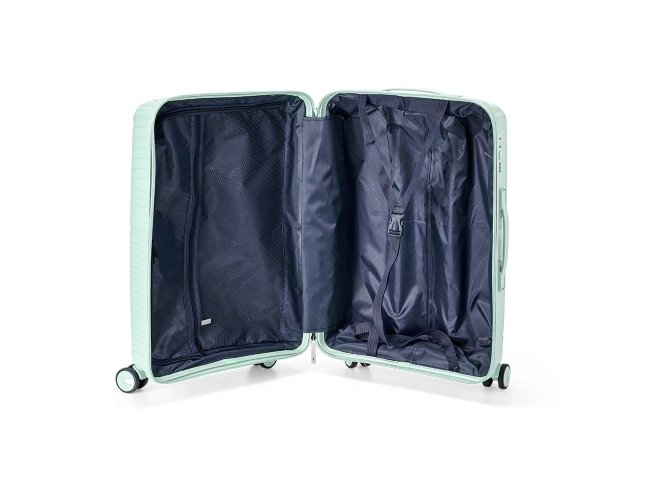 Mala de viagem em plástico resistente com capacidade de até 67 litros. Possui espaço interno com divisória, que contém bolso em tela e outro espaço com cinta compressora para organização de objetos. Conta com duas alças de mãos, uma superior e outra lateral, quatro apoios laterais, quatro rodinhas com giro em 360º, puxador com ajuste de nível e cadeado numérico TSA.